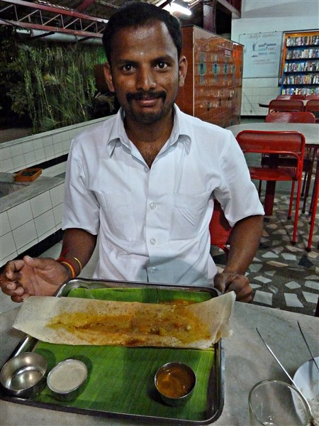 Vers 13h nous mangeons dans un genre de rrestoroute. On nous place à part dans la salle familiale. Nous goutons à notre premier dhal (lentilles cuites) avec des nans. Premier exercice pour manger sans fourchette et de la main droite uniquement! Pas évident de couper le nan en ne se servant que d’une main. On a plein de dhal sur les doigts!!! Vengi rigole! C’était dhal’licieux et très bon marché, 4 euros pour nous trois!