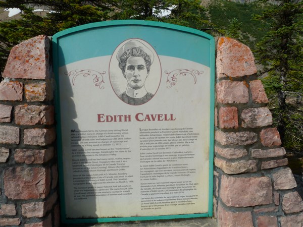 Le lendemain nous quittons définitivement l’Alberta, mais il nous reste deux merveilles à voir à Jasper : le Mont Edith Cavell et le Canyon Maligne. Le mont Edith Cavell, au sommet impressionnant (3 300 m), a été nommé ainsi à la mémoire d’une infirmière britannique exécutée durant la première guerre mondiale pour avoir aidé des prisonniers alliés à s’échapper de Bruxelles qui était alors sous l’occupation allemande. Une petite route sinueuse de 22 km puis une petite marche à travers les éboulis d’une moraine nous amène au pied du glacier Angel sous un ciel enfin redevenu clément. Le site est un gigantesque cirque de falaises avec un glacier suspendu en forme de colombe les ailes déployées, le glacier Angel (bon, il faut quand même avoir un peu d’imagination !).