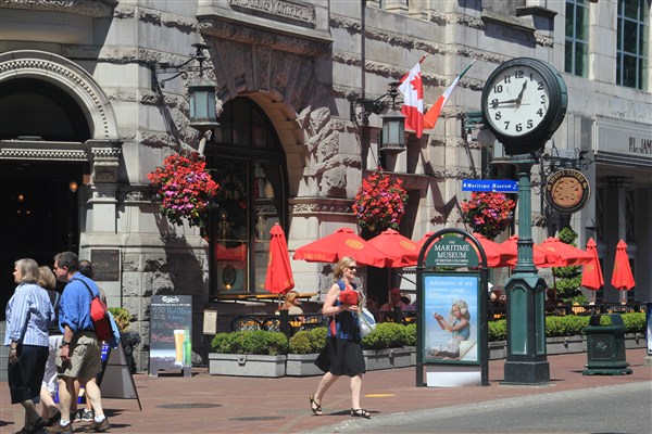 L’après–midi nous quittons le front de mer et nous nous promenons dans les ruelles des plus vieux quartiers de Victoria. Market Square respire la quiétude et il est agréable de marcher au pied de ses immeubles de brique, autrefois saloon et commerces, aujourd’hui restaurants et galeries d’art. Nous faisons un crochet par le quartier chinois, le plus ancien et le plus coloré du Canada, mais sans comparaison avec les Chinatown de San Francisco ou New York !