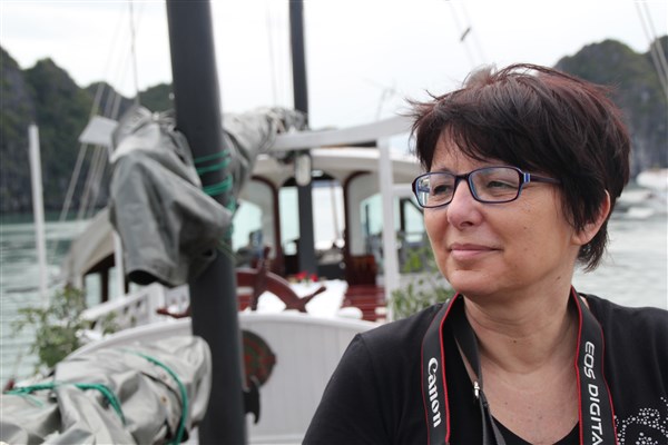 Nous accostons sur une plage pour visiter une grotte et ensuite selon l’envie possibilité de faire un peu de kayak où de prendre un bain de mer. Puis retour à la jonque qui vogue vers le point de mouillage pour la nuit. Les panoramas sont époustouflants, dommage que le ciel soit désespérément gris. Le paysage est fantomatique, mais cela n’enlève rien à la magie.