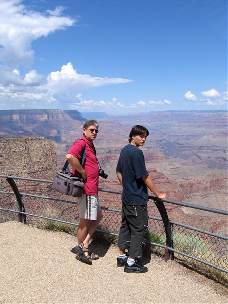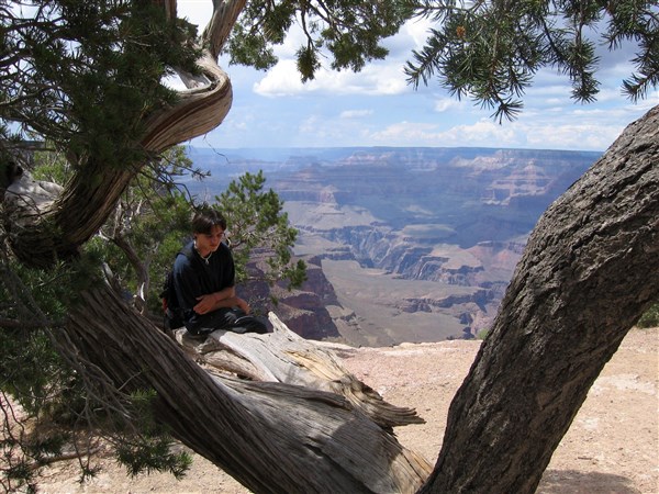 Les plus fortunés peuvent envisager le survol du canyon en avion ou en hélico et les plus aventuriers une descente des rapides du Colorado. Nous mangeons au General Store puis prenons le shuttle pour longer Grand Canyon et aller jusqu’à Yaki Point. Hélas on se plante dans le schedule et on se tape tout le circuit du village en bus… 30 minutes de perdues. Enfin, voici Yaki Point. La lumière a changé, le ciel est à l’orage et le spectacle d’autant plus beau.