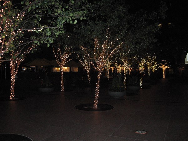 La nuit les tours de Downtown, illuminées, sont assez jolies. Mais des vigiles « pa…tibulaires » mais presque, m’empêchent de photographier : espionnage (?) qu’ils disent ! Sont vraiment spéciaux ces Américains !