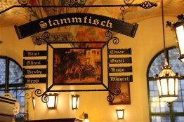 La hauteur de plafond fait tourner la tête, on écarquille les yeux devant les étagères pleines de bocks à bière, l’orchestre de cuivre et les chopes cadenassées qui appartiennent aux habitués.