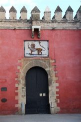 En arrivant par la plaza del Triunfo, on traverse la formidable enceinte par la puerta del León (porte du Lion). Le lion, immortalisé par des azulejos, symbolisait la victoire de la Reconquête et pendant une courte période, cette porte fut effectivement défendue par un vrai lion.