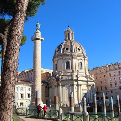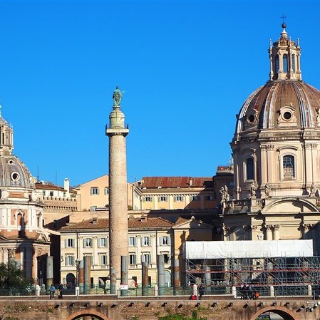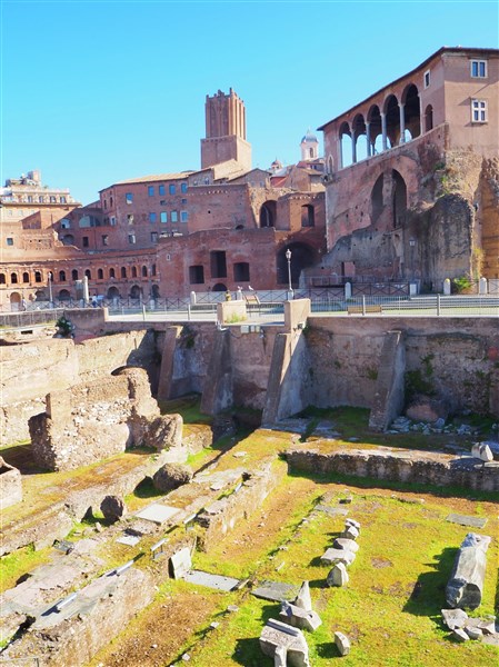 Impossible de manquer les imposants marchés de Trajan. A l’origine cette place était le haut lieu des échanges mercantiles ordonnés par l’empereur romain Trajan. Au centre de la place, la colonne de Trajan, tombe de l’empereur, dont le soubassement sert de pierre tombale à l’urne contenant ses cendres.