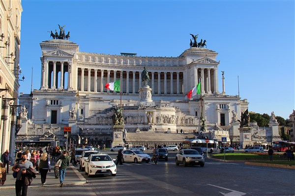 Piazza Venetia : Cette place est dominée, voire écrasée, par le Vittoriano, monument dédié à Victor-Emmanuel II, roi d’Italie après l’unification du pays.vCet édifice grandiloquent est affublé de divers surnoms : la machine à écrire, mais aussi le dentier ou la pièce montée. La place en elle-même est surtout un grand carrefour où il faut faire attention de ne pas se faire renverser !