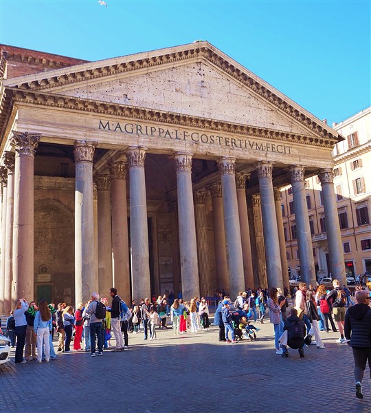 Le Pantheon: Spectaculaire pour son architecture cylindrique et son ancienneté (deux mille ans, tout de même !), le Panthéon est incontournable. Il symbolise « la ville éternelle » à lui tout seul! Il fut érigé par Agrippa en 27 av. J.-C. Le temple dont le nom signifie en grec « de tous les dieux » est alors dédié à Vénus et à Mars, respectivement grand-mère et père des deux jumeaux Romulus et Remus.