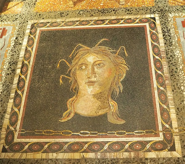Baissez les yeux, le marbre et les mosaïques sont ici d’origine. Le sol est légèrement concave pour canaliser de potentiels écoulements d’eau évacués par les 22 orifices mystérieux qui sont reliés à un réseau d’égouts souterrains.