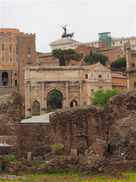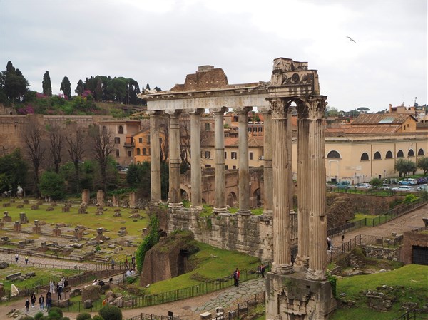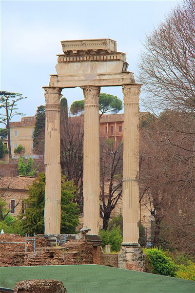Parmi les structures qui survivent aujourd’hui il y a le Temple de Castor et Pollux avec ses trois magnifiques colonnes corinthiennes, le Temple de Saturne, le Temple de Vesta, le Temple de Romulus, l’Arc de Titus mais la plupart de ces monuments ne sont plus que des vestiges.