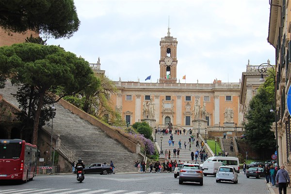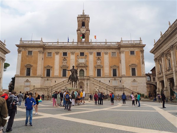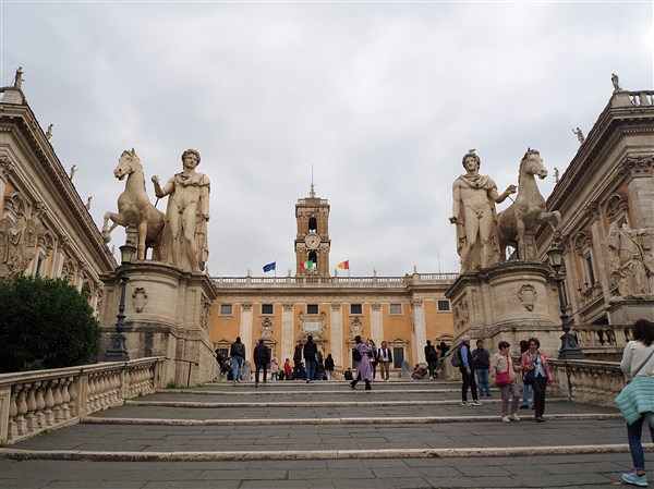 Nous rejoignons le Capitole, la plus petite des 7 collines de la ville éternelle. A l’époque antique on trouvait sur celle-ci plusieurs temples importants qui formaient l’épicentre du pouvoir religieux romain. Ils dominaient le brouhaha des forums et la clameur de la plèbe venue assister à quelques féroces combats dans le Colisée!