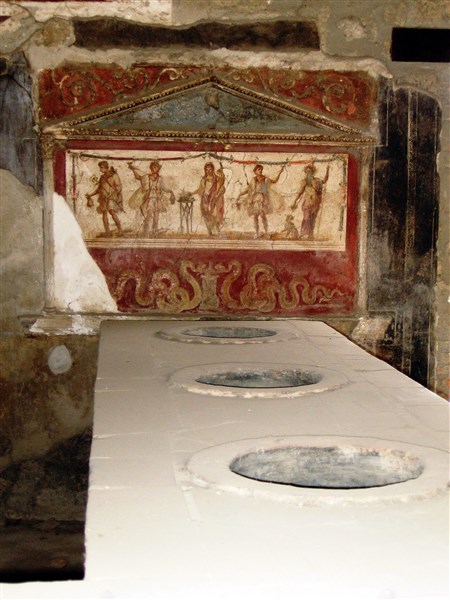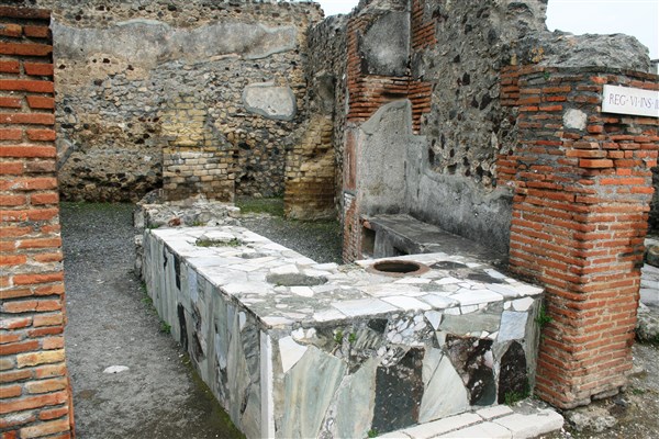 Et oui, et sans transition, il y a aussi des bars à Pompéi ! Les amphores sont encore visibles. C’est là que le précieux liquide était stocké.