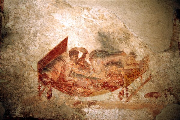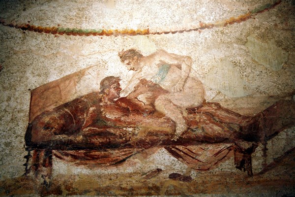 L’amour est présent, sous toutes ses formes, du plus sentimental au plus vulgaire. Dans l’ensemble de la cité, on a dénombré au moins vingt-cinq lupanars, dont la direction est parfois indiquée par un phallus gravé dans les dalles de la rue ou peint sur un mur.