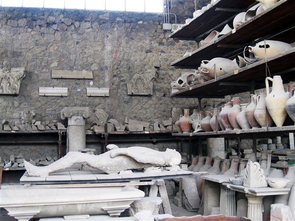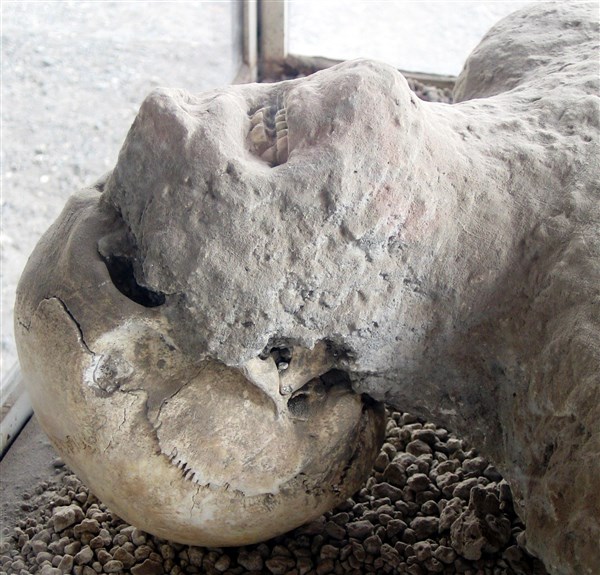 Les cendres générées par l’éruption volcanique se sont transformées en une couche protectrice qui a traversé les siècles. Imaginez la scène il y a près de 2000 ans, lorsque le Vésuve est entré en éruption. Un nuage de cendres et de poussière s’est élevé à près de 20 km de haut projetant des roches en fusion sur des kilomètres à la ronde. Durant 20 heures d’affilée, une pluie de cendre s’est abattue sur Pompéi. Terrible et apocalyptique!.