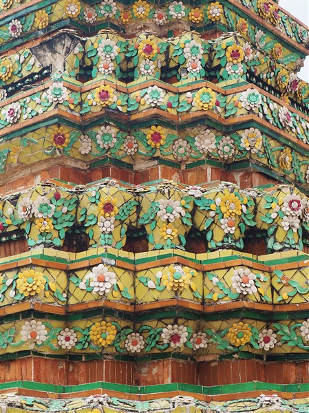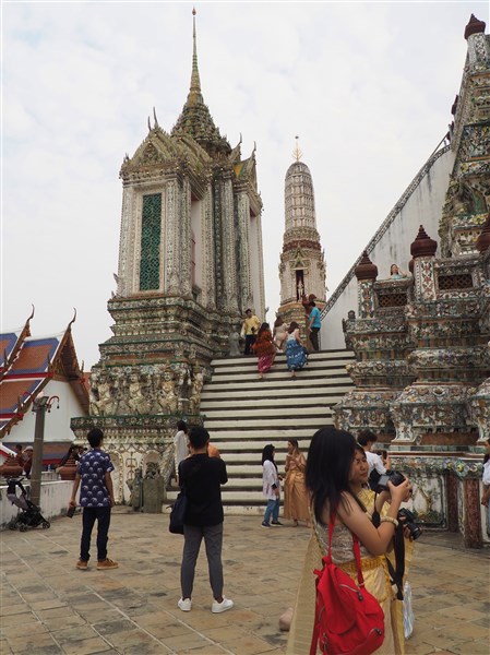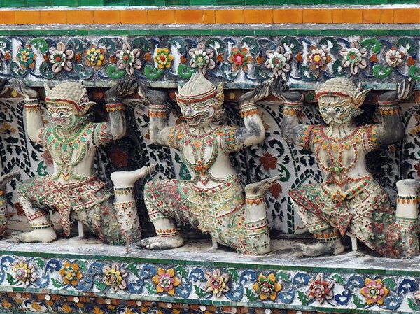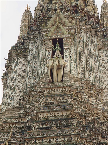 Recouvert de fragments de porcelaine, son prang (tour sanctuaire) central, haut de plus de 80 m, domine le fleuve. Ce « temple de l’aube » commémore l’arrivée du roi Taksin et l’installation de la capitale sur les rives du Chao Phraya en 1767. Depuis la terrasse du prang, la vue sur Bangkok et le fleuve est magnifique.