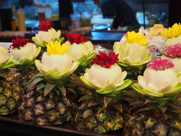Dans les rues de Bangkok, tout se vend et tout s’achète (ou presque…). Les marchés, disséminés un peu partout dans la ville, sont des lieux de promenade où l’on se régale du spectacle offert par les étalages et les marchands. Les rues avoisinants notre hôtel étaient tous les jours envahies par un marché de quartier.