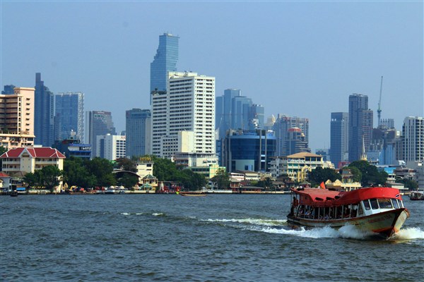Le Chao Phraya, « seigneur des eaux » en thaï, est l’artère principale de Bangkok et fut longtemps l’axe majeur du commerce du royaume de Siam. Chaque jour, le fleuve est parcouru par une nuée d’embarcations, – navettes, ferries, long-tail boats traditionnels, péniches transportant des marchandises – formant un incessant ballet nautique.