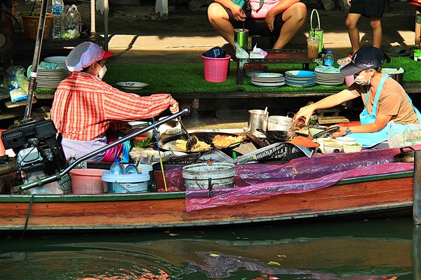 Dans le dédale de ses ruelles grouillantes de monde, s’entassent les stands, les boutiques, les étals, les gargotes fumantes, débordant d’objets de toutes sortes et de victuailles en tout genre. Une section du quartier s’appelle même Nakhom Kasem, le marché aux voleurs… manque plus qu’Ali Baba !