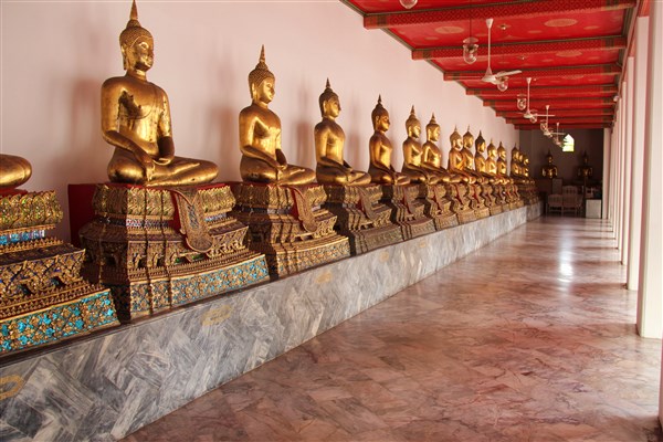 Mis à part ce Bouddha géant, le Wat Pho abrite également une collection de statues de Bouddha parmi les plus riches au monde. Pas moins de 400 bouddhas assis sont exposés dans le déambulatoire séparé en deux galeries.