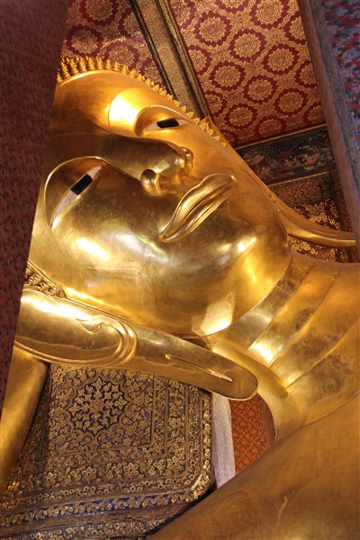 Ce magnifique temple royal du XVIIIe siècle est assurément l’un des temples incontournable de Bangkok. L’endroit dégage une ineffable spiritualité. L’attraction spectaculaire du temple est le Bouddha en position couchée de 46 mètres de long, qui attend avec le sourire son enlèvement au nirvana. La plante des pieds, incrustée de nacre, porte les 108 marques de bon augure que Bouddha portait à sa naissance.