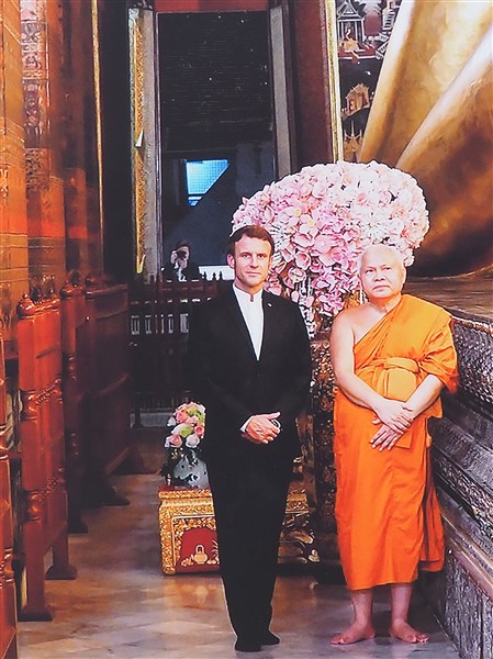 Nous avons trouvé à l’entré du temple, une collection de photos d’hommes célèbres ayant visité le Wat Pho. Le président Emmanuel Macron y était en 2022.