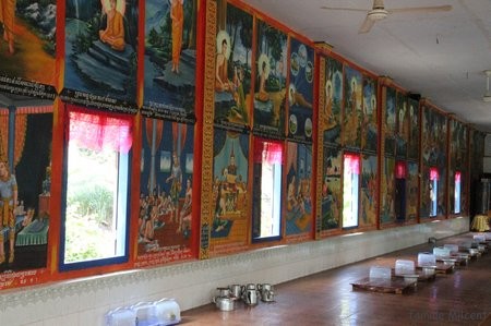 Un monastère bouddhique se trouve à côté de Bakong et nous avons pu y voir quelques moines. Les peintures extérieures et intérieures sont très belles et racontent la vie d’avant et celle de Bouddha.