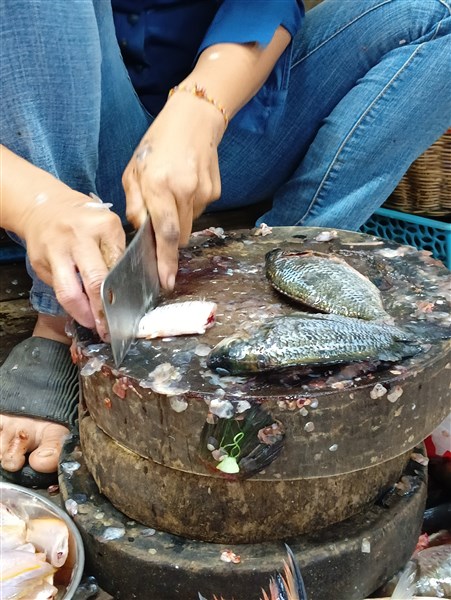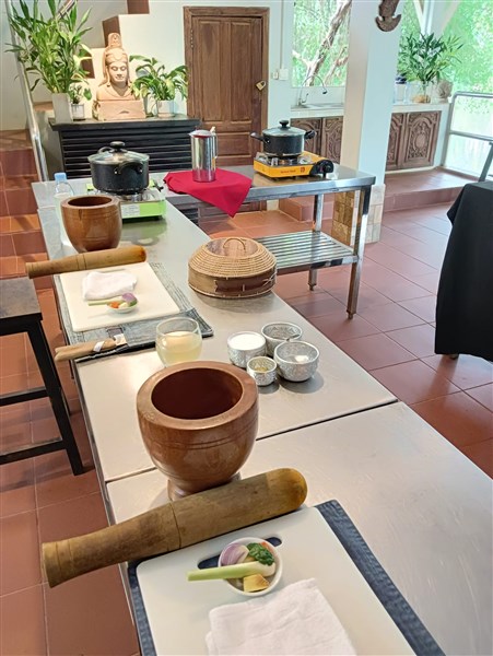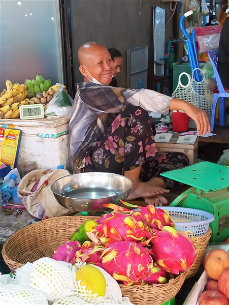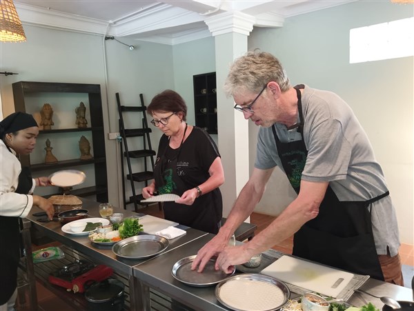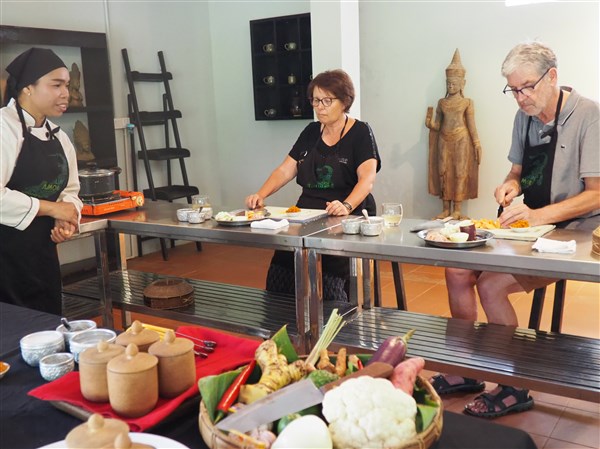 Aujourd’hui, nous allons à un cours de cuisine cambodgienne qui commence par une visite au marché local pour choisir les ingrédients nécessaires.