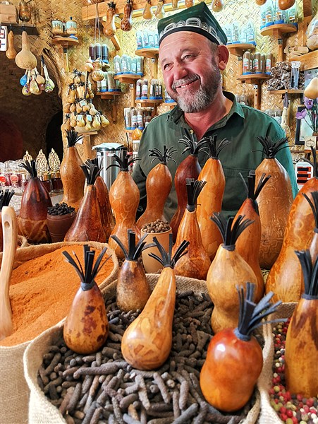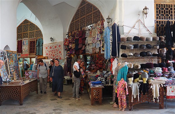 Des dizaines de bazars spécialisés, il ne reste que trois marchés couverts, lourdement restaurés à l’époque soviétique : Taq-i-Sarrafon (changeurs), Taq-i-Telpak Fourouchon (chapeliers) et Taq-i-Zargaron (bijoutiers). A Boukhara la pieuse, spiritualité et commerce sont liés et s’harmonisent.