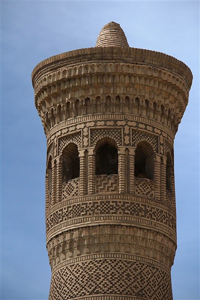 Haut de 47 mètres, le minaret Kalon était certainement l’édifice le plus élevé d’Asie centrale à l’époque de sa construction. Cette structure alterne les motifs géométriques en briques cuites, du sol au sommet.