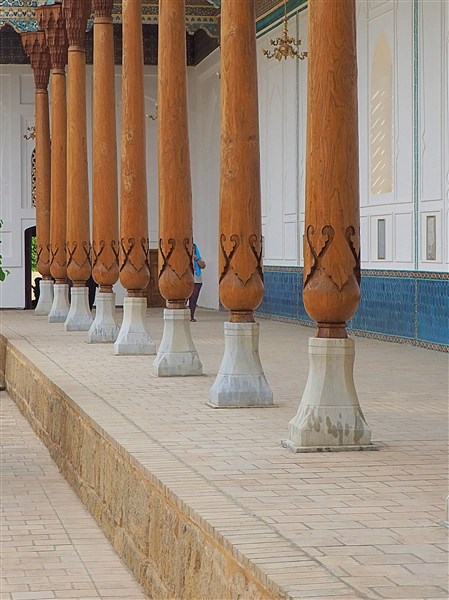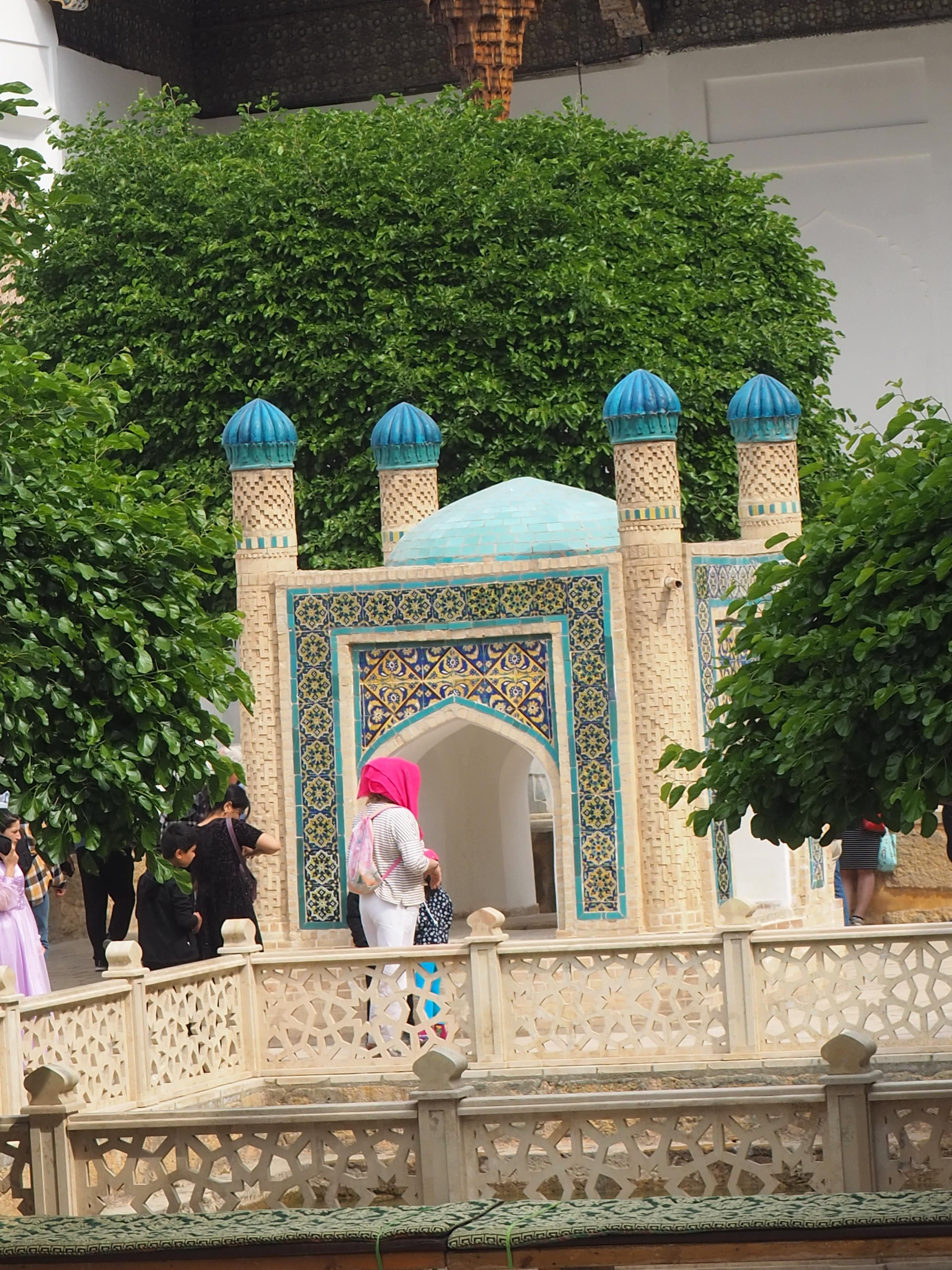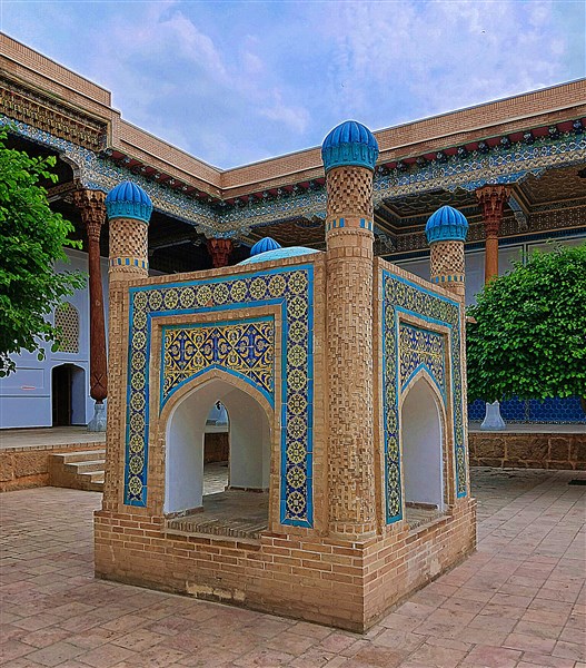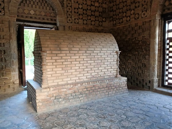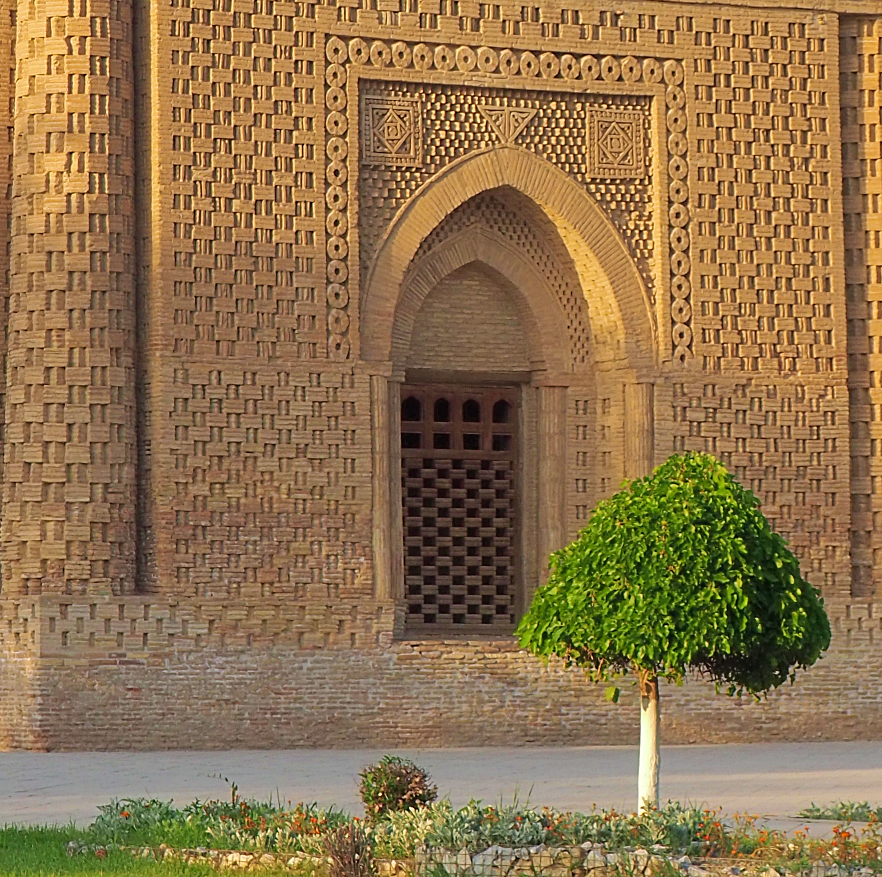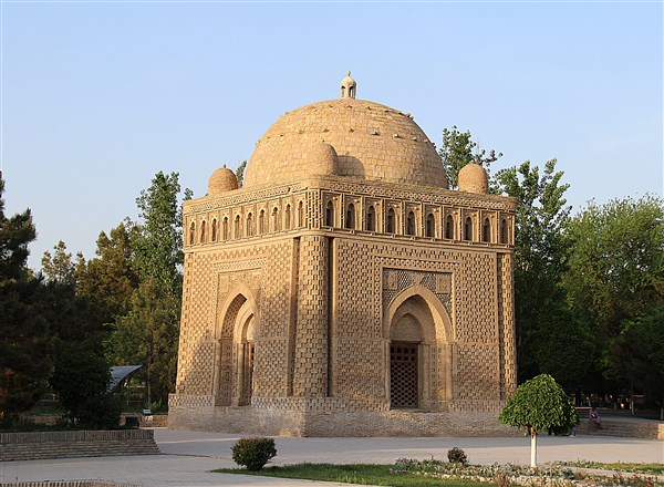Ce remarquable monument, restauré avec minutie, est aujourd’hui au cœur d’un parc arboré. Le cube parfait qui forme la façade représente la terre et la stabilité, tandis que le dôme sphérique symbolise le ciel. La façade en briques de terre cuite ciselé, faites à base de lait de chamelle, de jaune d’œuf et de vin rosé, évoque un tressage délicat d’osier. Ce type d’architecture est très rare en Asie centrale.