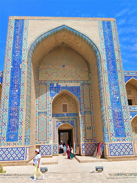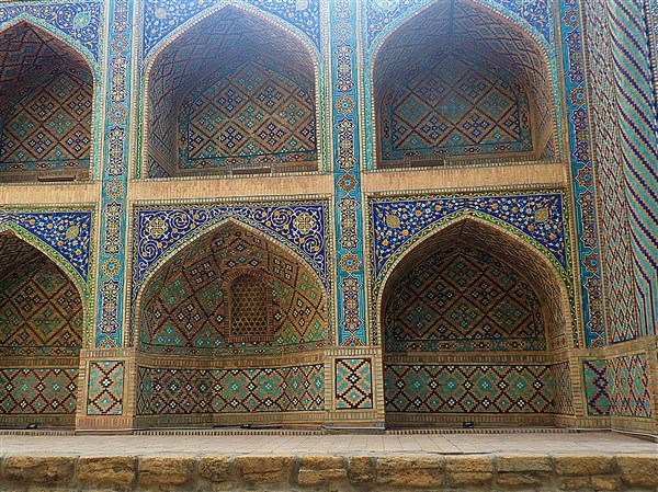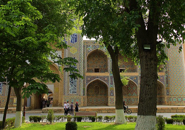 Cette medersa fut construite par Oulough Begh, le prince astronome de Samarkand, successeur de Tamerlan. L’inscription de la porte d’entrée rappelle la sagesse et l’ouverture d’esprit de son constructeur : « Aspirer à la connaissance est le devoir de chaque musulman et musulmane. » Ouverture d’esprit que peu de ses contemporains et successeurs ont partagée, puisque le bâtiment, comme toutes les madrasas, resta interdit aux femmes!
