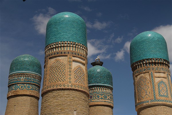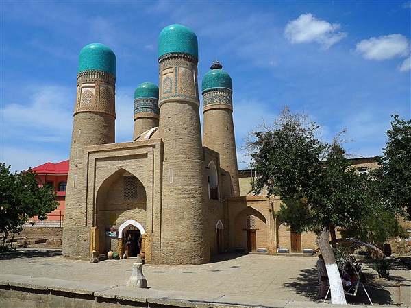 La petite medersa Tchor Minor se distingue par son architecture singulière, marquée par 4 minarets élégants surmontés de coupoles azur. Les 4 minarets représentent les 4 directions du monde.