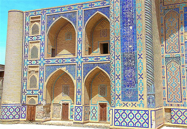 La madrasa Mir-i-Arab fait face à l’immense mosquée Kalon. Elle fut construite par le cheik Abdullah, chef religieux yéménite. Le khan finança sa construction grâce à la vente de 3 000 prisonniers perses, des musulmans chiites qui étaient considérés comme des infidèles et pouvaient donc être vendus comme esclaves.