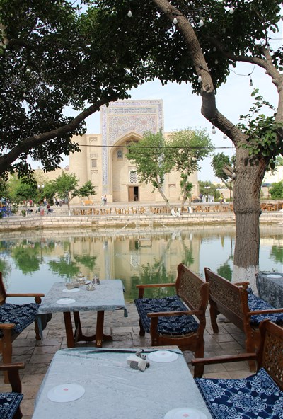 C’ est un lieu de vie et de convivialité au cœur de la vieille ville. Le bassin dispense de la fraîcheur même aux heures chaudes de l’été. A l’époque de sa grandeur, Boukhara comptait une centaine de bassins de ce type, dont le Liab-i-Khaouz est un des rares survivants.