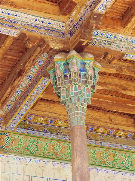 La mosquée Bolo-Khaouz est l’une des plus belles de Boukhara. Ses piliers sont ornés de stalactites peintes qui lui donnent une allure unique en son genre. Au pied de l’escalier de marbre trône un bassin, celui-là même qui donna son nom à la mosquée.