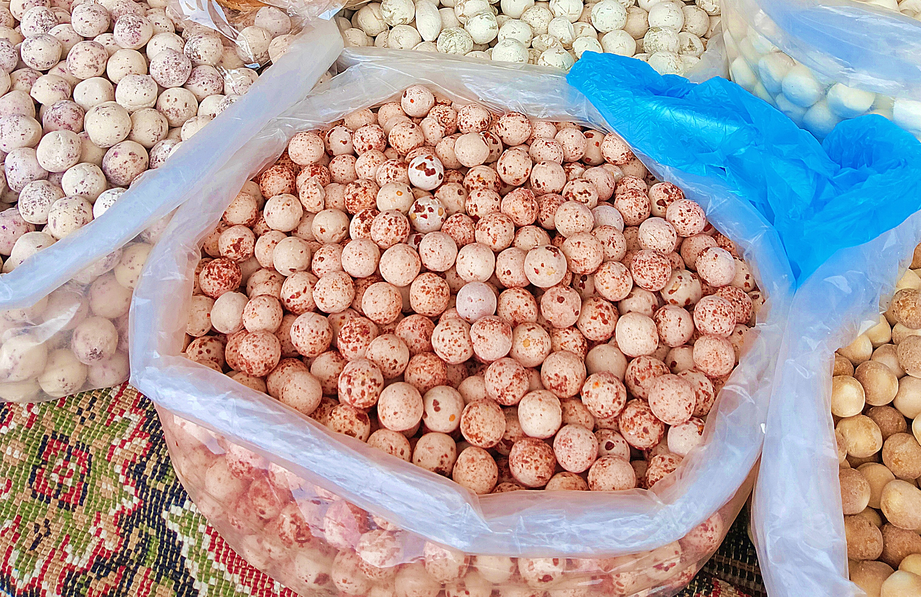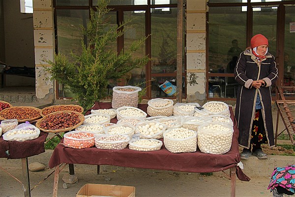 Au marché, les voyageurs achètent traditionnellement du kurt ou kourout, des boules de fromage durci à base de lait fermenté provenant de divers animaux.