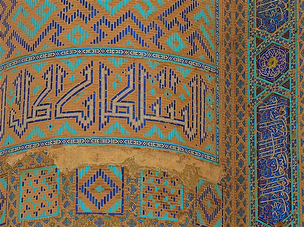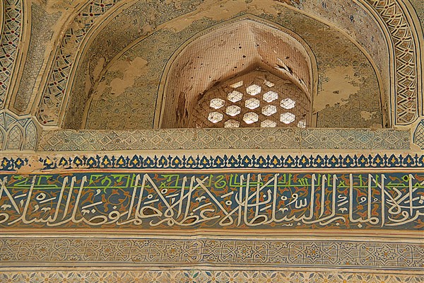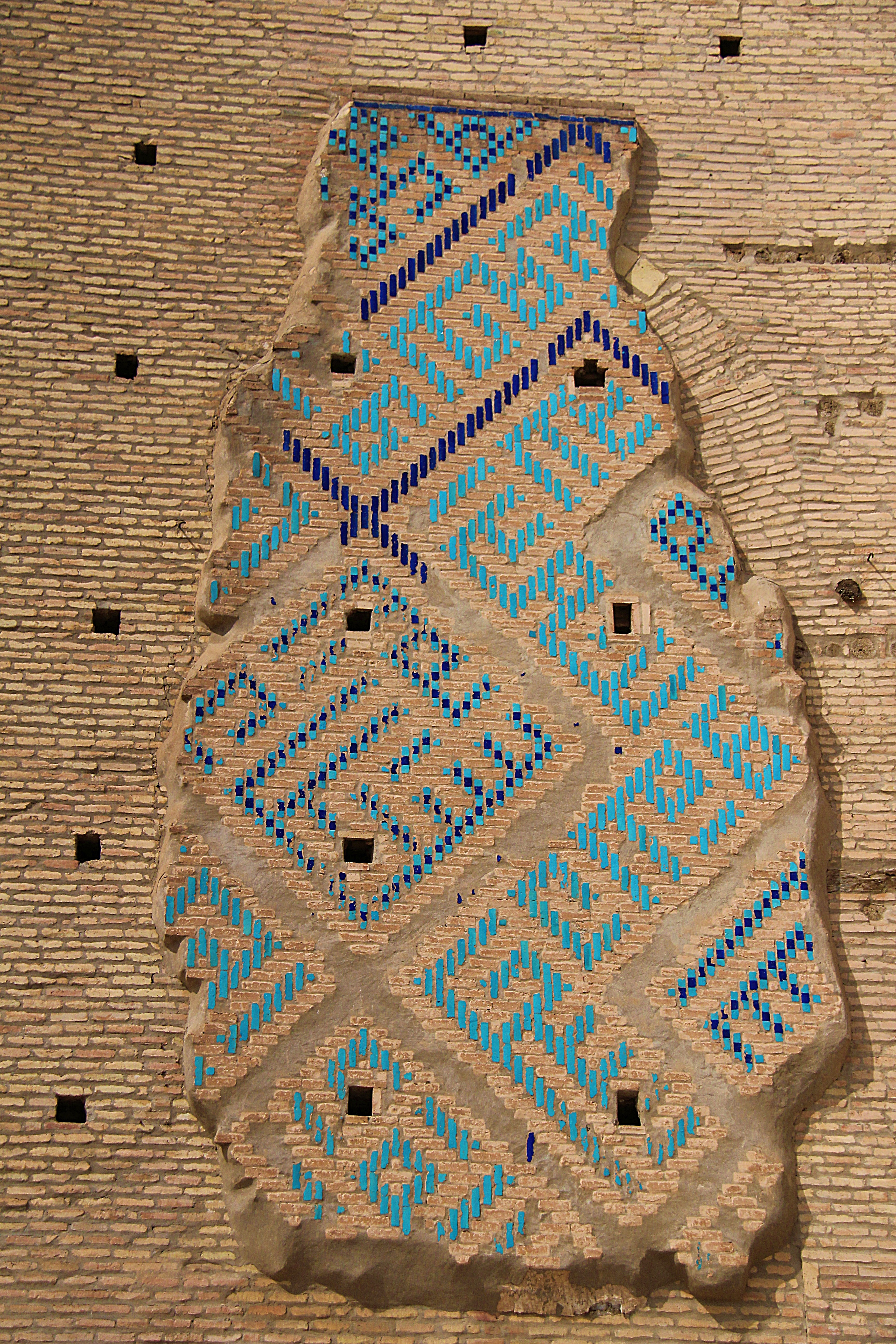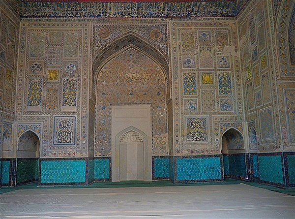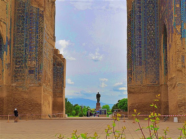 Une inscription sur le portail, « Si tu doutes de notre pouvoir, regarde nos bâtiments », était destinée à impressionner le visiteur étranger . Ce palais, détruit au xvie siècle par l’émir de Boukhara, est le parfait exemple du pouvoir de Timur et de son amour pour les belles choses.