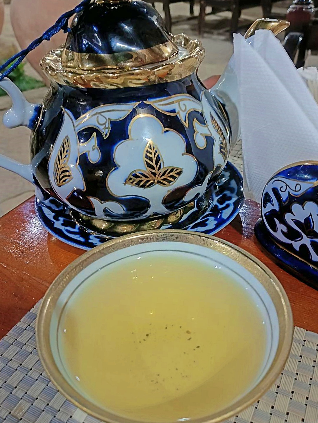 Le thé, vert ou noir, est la boisson incontournable en Ouzbékistan. Le thé se dit kuk-choy pour le thé vert et kora-choy pour le thé noir, qu’on boit sans lait ni sucre, accompagné d’amandes et pistaches sauvages. Servi à toute heure de la journée, en guise de bienvenue, d’au revoir, ou juste pour passer le temps, le thé est une véritable religion et le servir obéit à tout un cérémonial.