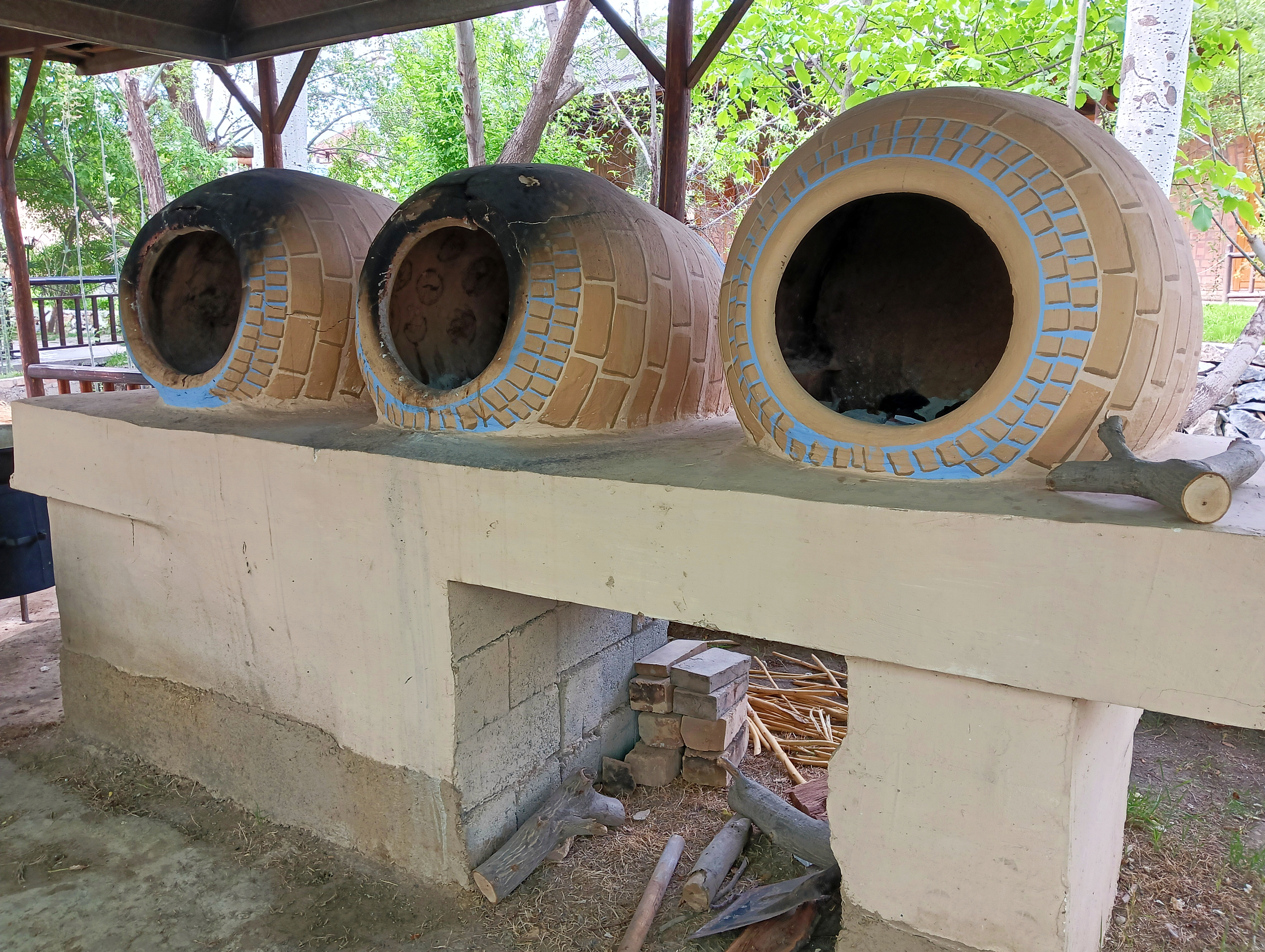Cuit dans un tandir, four traditionnel en forme de puits, il ressort délicieusement tendre. Il est collé aux bords du four avec un peu d’huile.