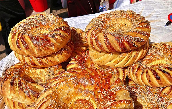 C’est un plat courant, consommé tous les jours, vendu aux bords des routes et qui constitue un plat à lui seul. En Ouzbékistan, ces pains sont cuits dans des fours en terre. Ils jalonnent les routes. Les pains sont collés sur les parois du four.