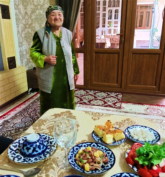 Les tables d’hôtes (encore rares en Ouzbekistan) ont toujours été de merveilleux moments de rencontre et d’échange. Que ce soit à la table d’hôtes tenue par l’épouse de notre guide Komil (Hilol House à Tashkent) ou chez une adorable ancienne mathématicienne à Samarcande. Que de beaux souvenirs!