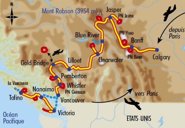 Notre périple de 22 jours nous mènera de Calgary à Vancouver en passant par Banff, Golden, Jasper, Clearwater, Kamloops, Whistler, Nanaimo, Tofino, Ucluelet, Victoria et Vancouver. Outres les merveilles naturelles, des villes charmantes nous attendent! Calgary et son atmosphère western, la mythique Vancouver et Victoria avec ses monuments historiques. Tous ces joyaux sont à portée de nos yeux !!