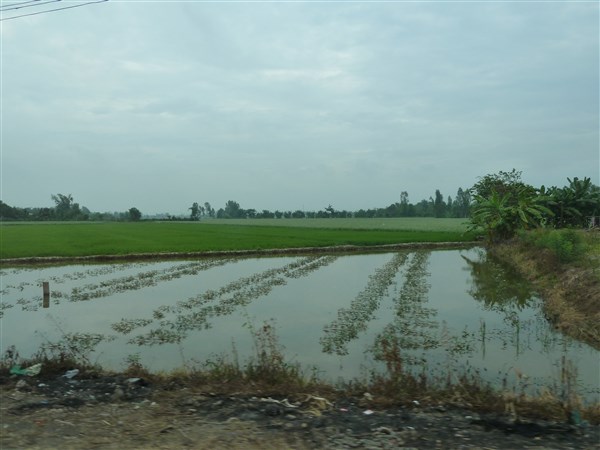 Aujourd’hui la route nous mène de Can Tho à Cho Doc à la frontière du Cambodge. Premier arrêt pour la visite d’une pagode Khmer dont le nom m’échappe.