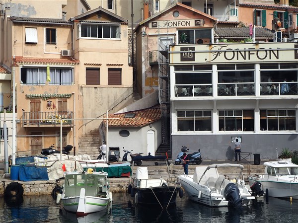 Le Vallon des Auffes est aussi une belle escale gastronomique lors d’une promenade sur la Corniche. Bouillabaisse et poisson à l’argile sont les spécialités que l’on peut goûter « chez Fonfon », derrière les baies vitrées donnant sur le port. Hummm!